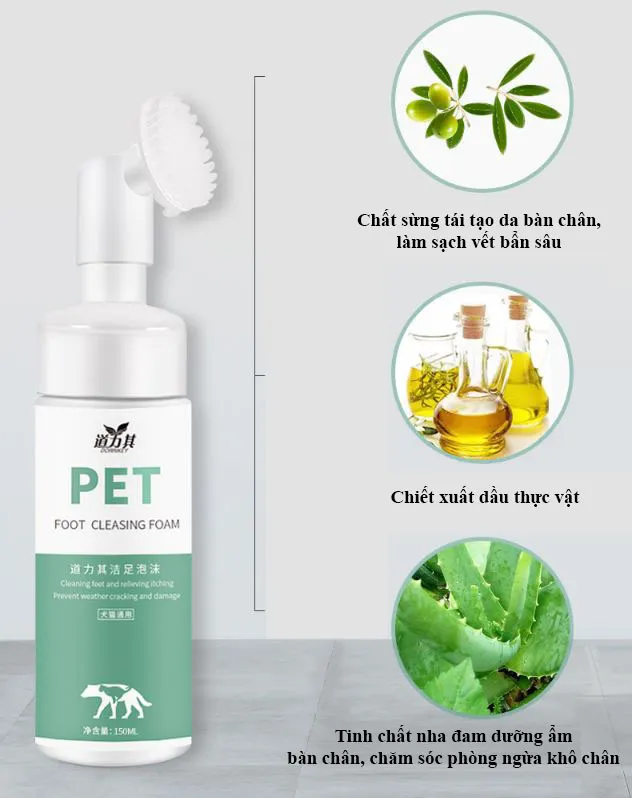 Bọt rửa chân chó mèo Dorrikey làm sạch kẽ bàn chân cho chó mèo 150ml